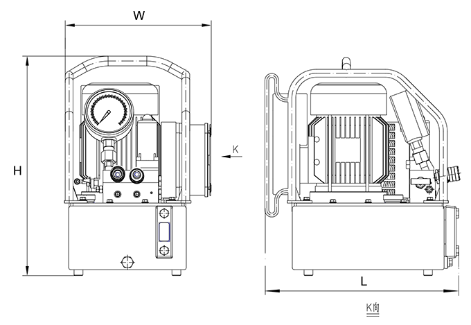 KLW4000 for special pump, hydraulic wrench assembly adopts integrated way, by the control unit, power unit, electrical devices such as an independent complete hydraulic device, composed of A large flow, large volume, light weight, simple structure, convenient operation, high working pressure, etc, and export (A) high pressure oil pressure can be adjusted between 70 ~ 70 bar.