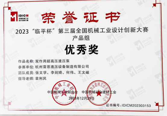 雷恩液壓 | 2023第三屆全國機(jī)械工業(yè)設(shè)計創(chuàng)新大賽獲獎