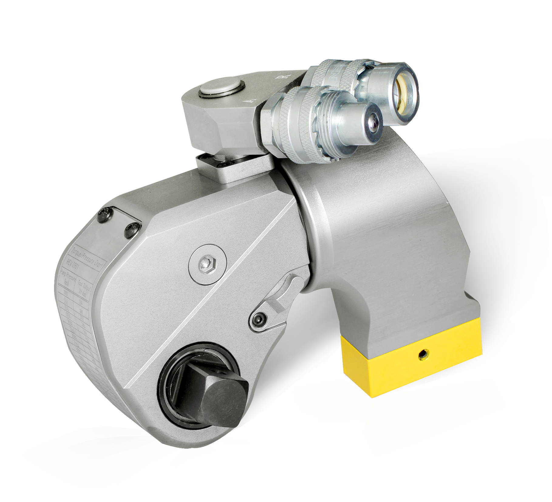 液壓扳手由動(dòng)力頭、工作頭、液壓扳手專用泵以及高壓油管,快速接頭組成。通過高壓油管,液壓泵將動(dòng)力傳輸?shù)焦ぷ黝^,驅(qū)動(dòng)工作頭旋轉(zhuǎn)螺母的擰緊或松開。