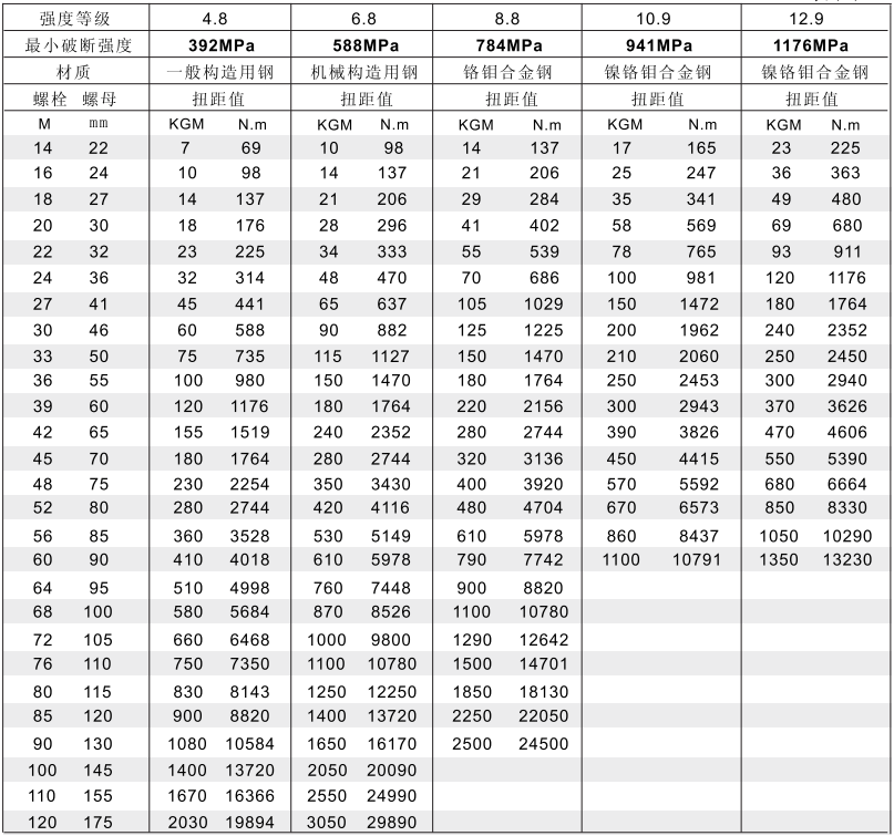 例如:8.8級、M48螺栓,表中建議預(yù)緊力為3920N. m,則設(shè)定力矩為:3920X90%=3528N.m。