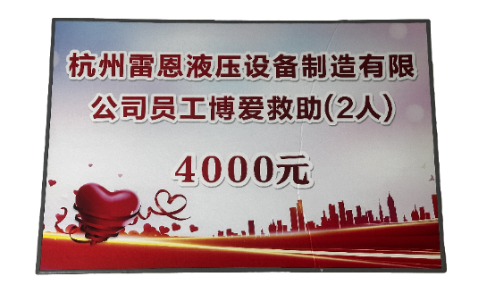在這次意義非凡的博愛(ài)捐贈(zèng)活動(dòng)中,杭州雷恩液壓設(shè)備制造有限公司有兩名困難員工獲得共計(jì)4000元的博愛(ài)救助金。