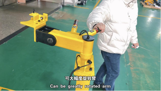 液壓扭矩扳手托舉工裝主要用于扳手的托舉,減輕作業(yè)施工過(guò)程的勞動(dòng)強(qiáng)度,讓操作更便捷,尤其是在高強(qiáng)度螺栓或大型設(shè)備中應(yīng)用廣泛。設(shè)備主要由可移動(dòng)腳輪底座、立柱主體、電動(dòng)推桿、升降架、扳手托舉調(diào)節(jié)板及電器控制部分組成。
