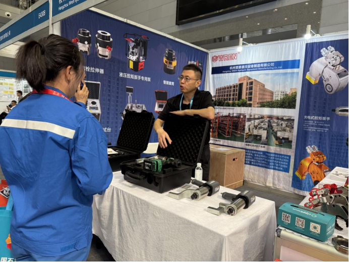 杭州雷恩液壓設(shè)備制造有限公司也積極參與其中。在展會(huì)上,雷恩液壓攜旗下一系列先進(jìn)的液壓設(shè)備精彩亮相,其展品涵蓋了液壓扭矩扳手、電動(dòng)扭矩扳手、扭矩扳手泵、液壓缸等多種產(chǎn)品,憑借適配油田高壓作業(yè)環(huán)境的特性,吸引了眾多參觀者的目光。不少專業(yè)觀眾在展位前駐足,詳細(xì)詢問產(chǎn)品性能、應(yīng)用場景等問題,雷恩的工作人員都給予了專業(yè)且耐心的解答。