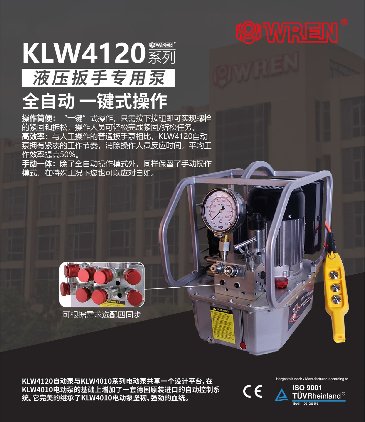 KLW4120自動泵與KLW4010系列電動泵共享一個設(shè)計平臺,在KLW4010電動泵的基礎(chǔ)上增加了一套德國原裝進口的自動控制系統(tǒng)。它完美的繼承了KLW4010電動泵堅韌、強勁的血統(tǒng)。