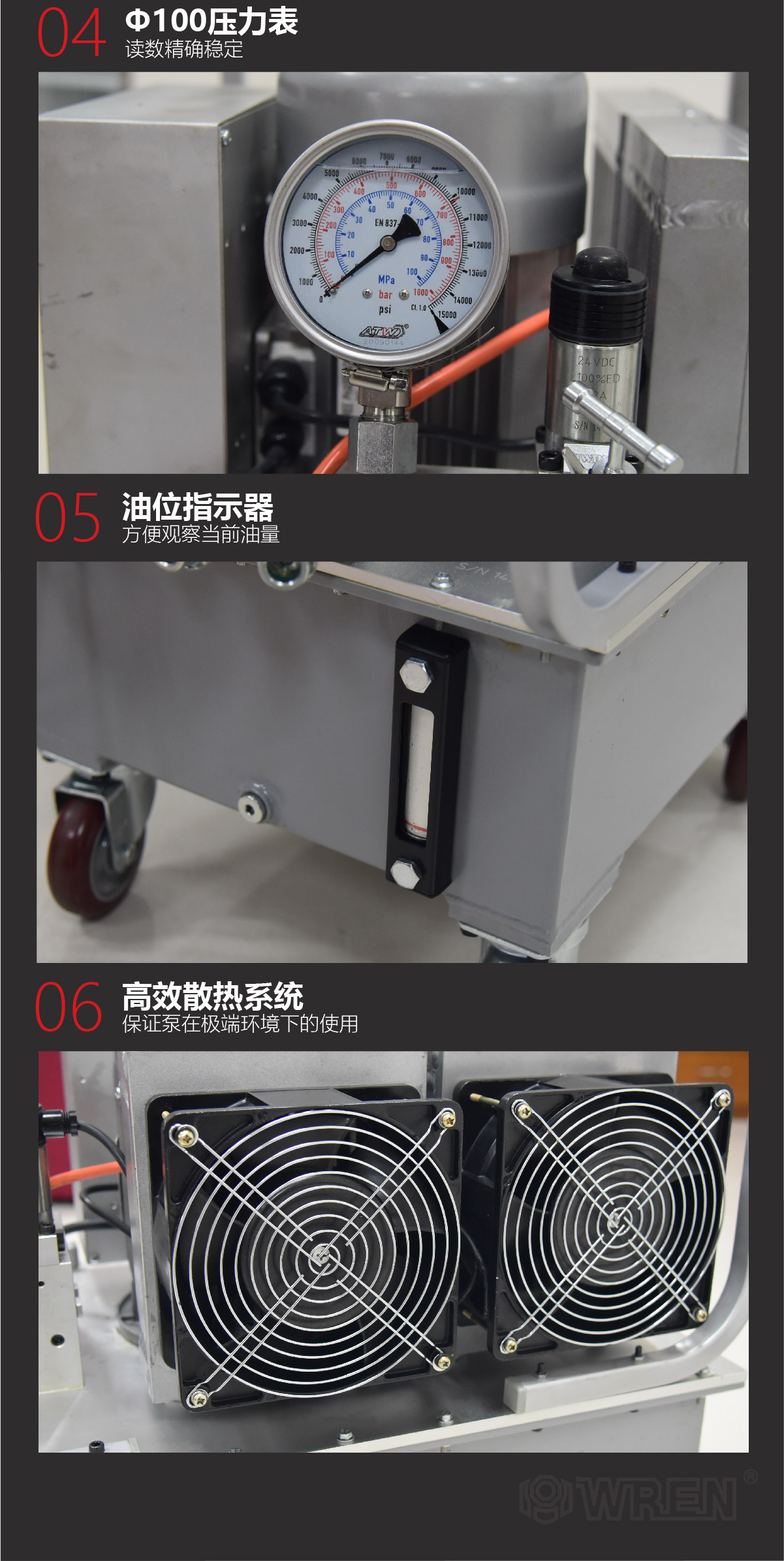 - 一體式三級流量,可帶壓啟動 - 雙電機工作,效率最大化 - 鋁制油箱配壓力表和電機 - Φ100高精度壓力表 - 工作壓力:70~700bar - 配備高效散熱系統(tǒng),保證泵在極端環(huán)境下的使用 - 加裝分配器可實現(xiàn)同時操作8臺扳手 - 可連續(xù)操作的設計,軟管米數(shù)可選